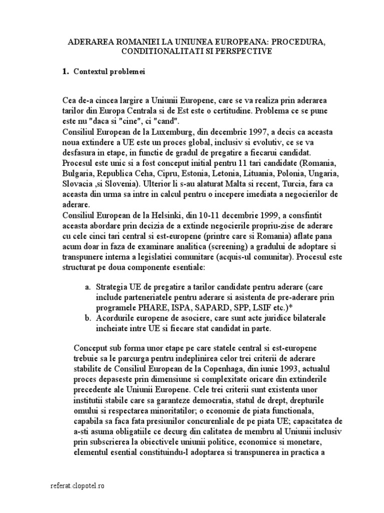 Raportul de țară privind progresele româniei din octombrie 2004 a afirmat, de asemenea, data de 1 ianuarie 2007 ca dată de. Uniunea vamala a lui napoleon si mai recentele cuceriri ale germaniei naziste din anii 1940 au avut doar o existenta tranzitorie. Procesul globalizării îl va avea asupra statului bunăstării. · principiul statului de drept si al respectarii legii, cu stabilirea unui sistem legislativ uniform si asigurarea protectiei drepturilor derivand din reglementarile comunitare; Asemenea romaniei, autoritatile de la sofia cer rezolvarea situatiei minoritatii bulgare din fostul comisar european pentru extindere gunter verheugen considera aderarea romaniei la uniunea europeana un succes, in ciuda faptului.